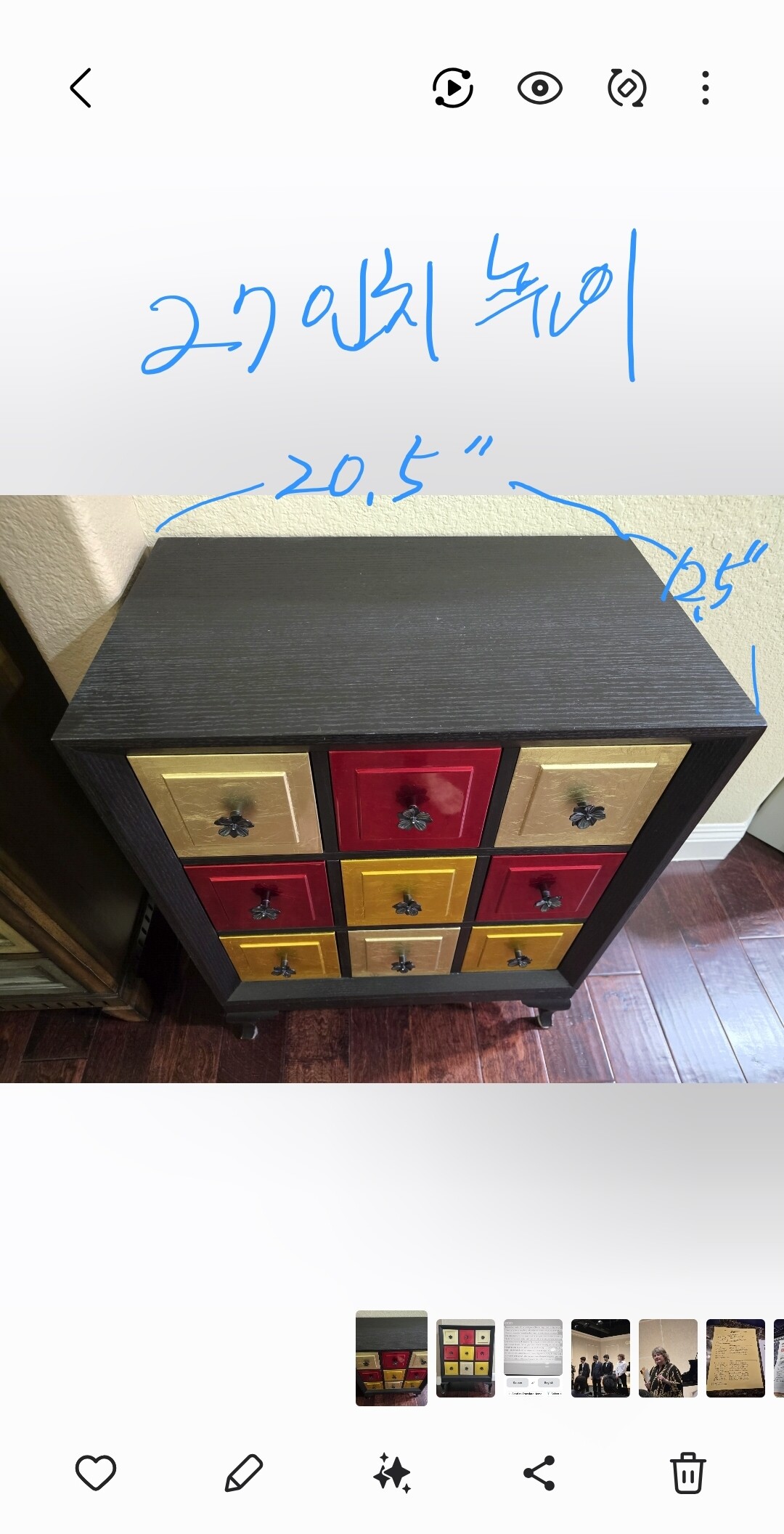 너무나 예쁜 한국 느낌 물씬 나는 9칸짜리 서랍장이예요.
