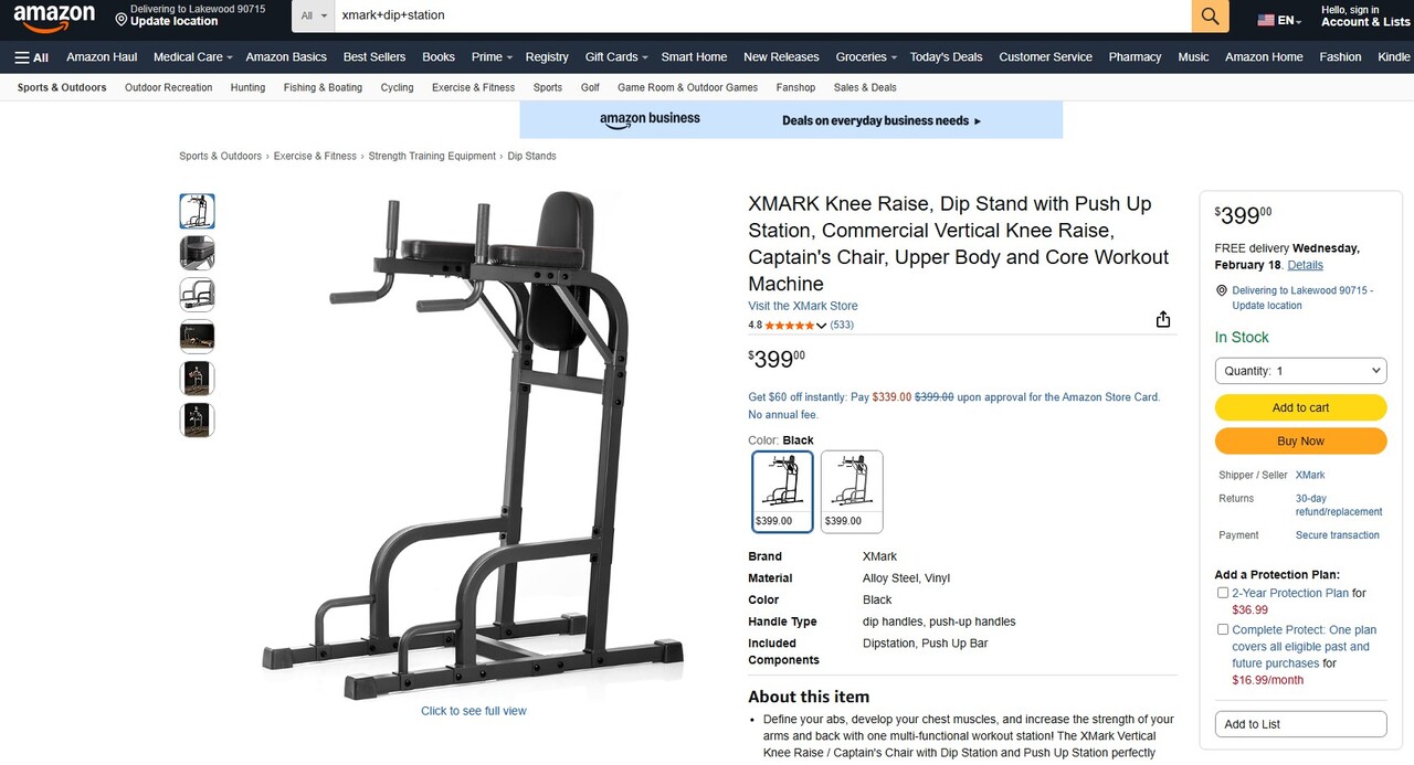 XMark dip station purchased from Amazon last year for $399 + tax. Lightly used and in very good condition. There are minor to moderate cosmetic scratches typical of steel equipment, but no rips, damage, or functional issues. Selling because I’m moving to a smaller place and can’t take it with me.