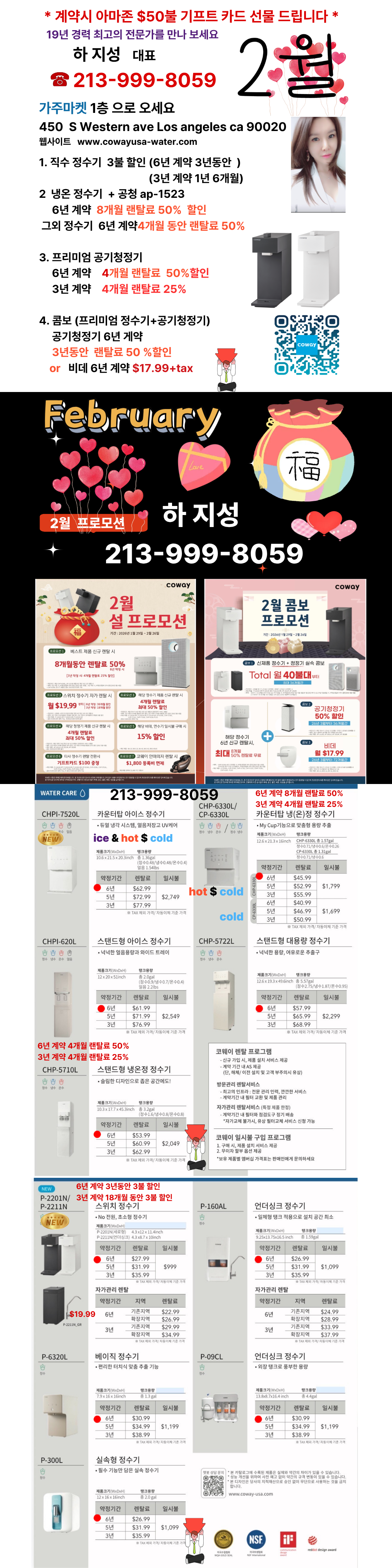 그외 정수기 6년 계약4개월 동안 랜탈료 50% (P시리즈 제외 )