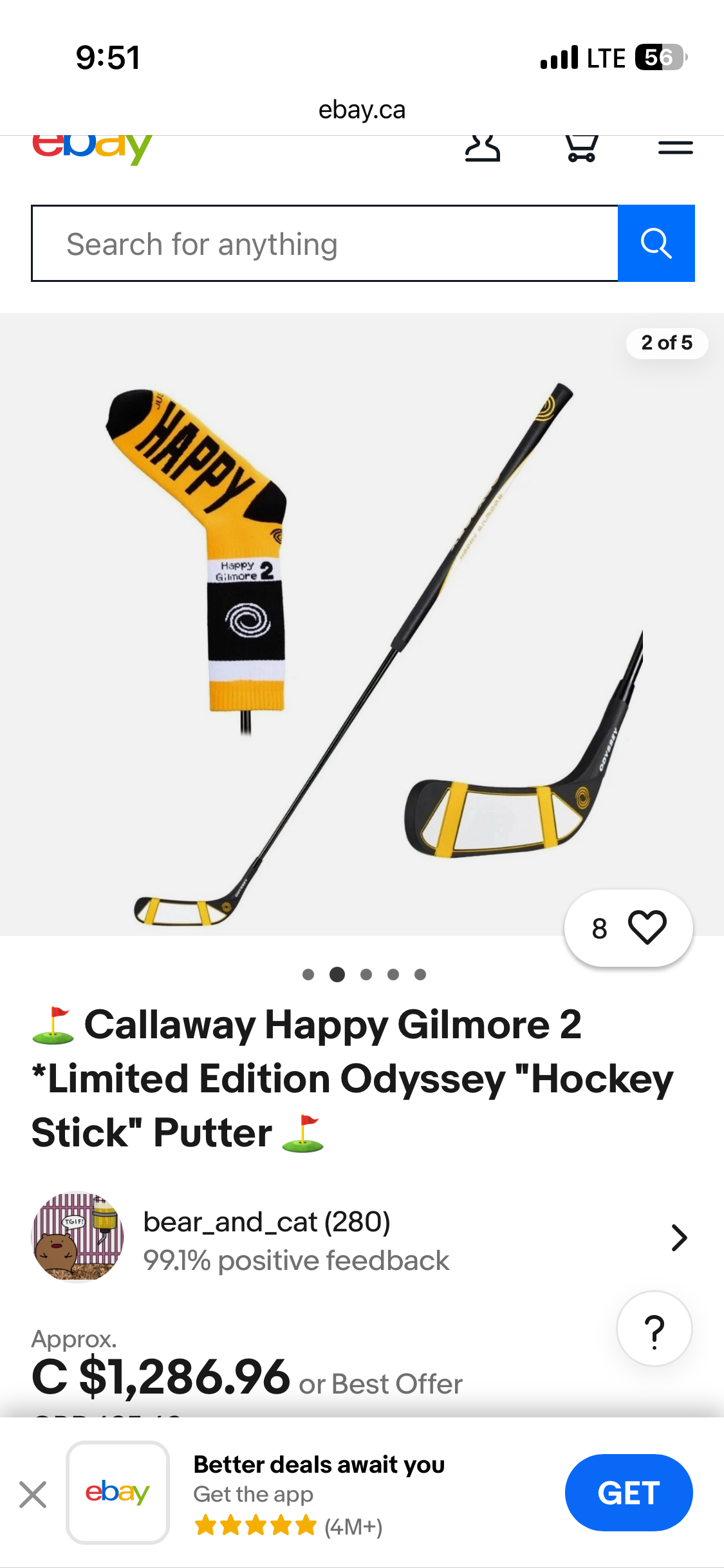 캘러웨이 해피길모어 2 리미티드 에디션 오디세이 "하키 스틱" 퍼터입니다