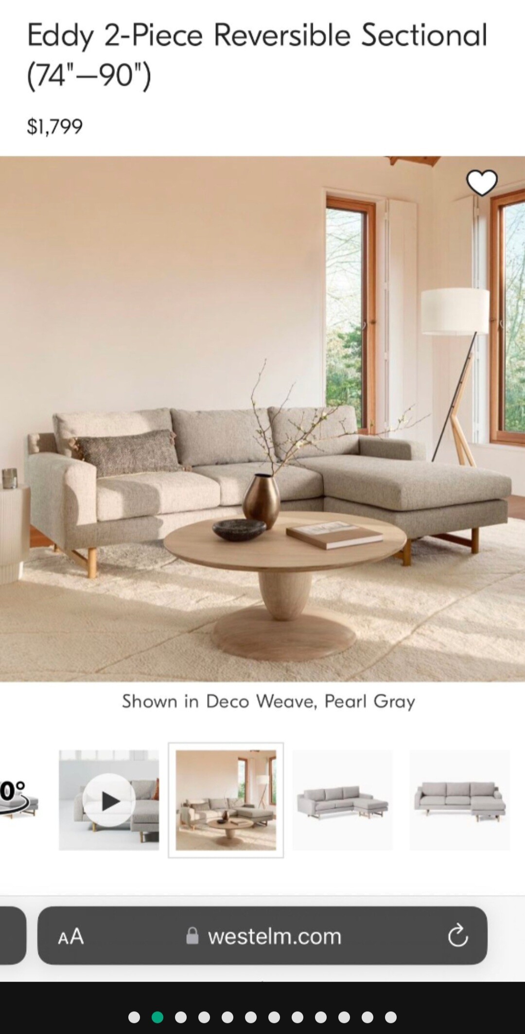 West Elm Eddy 2-Piece 리버서블 섹셔널 소파 판매합니다.