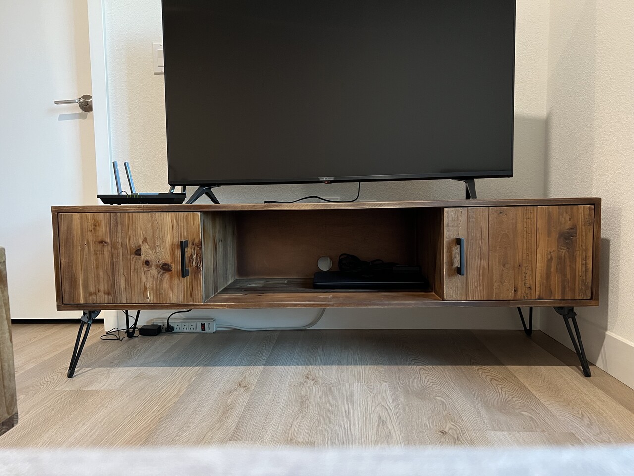 티비만 올려 놨던거라 새거나 다름없지만 나무를 가공하지 않은 제품이라 빈티지 느낌이 납니다.