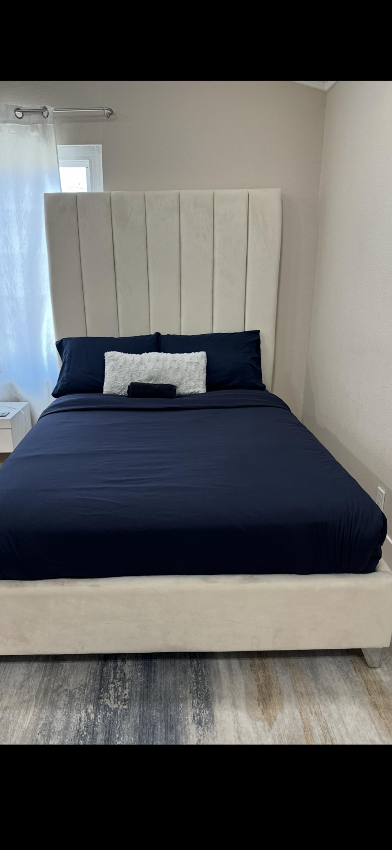 견고, 모던하고 세련된 아이보리 벨벳 소재 프레임