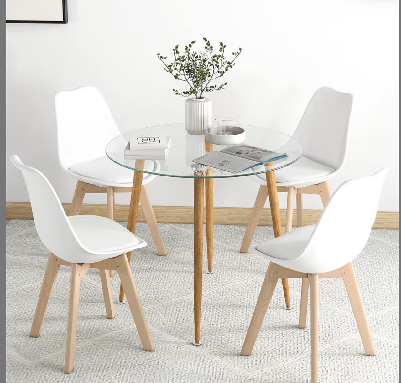 식탁 의자 세트에요! 투명유리 식탁은 두번째방에 두고 사용안했어요