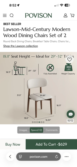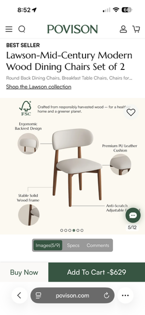 Provison 우드 레더 다이닝 체어 판매 합니다.
