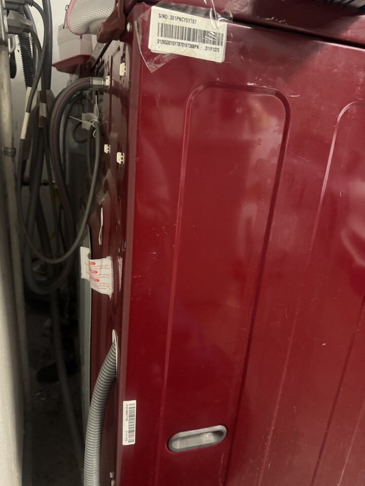 레드 컬러 LG 드럼 세탁기 & 건조기 세트입니다.