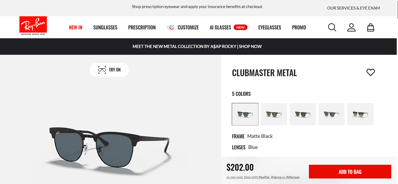 RAY BARN CLUBMASTER METAL 선글라스 RB3716