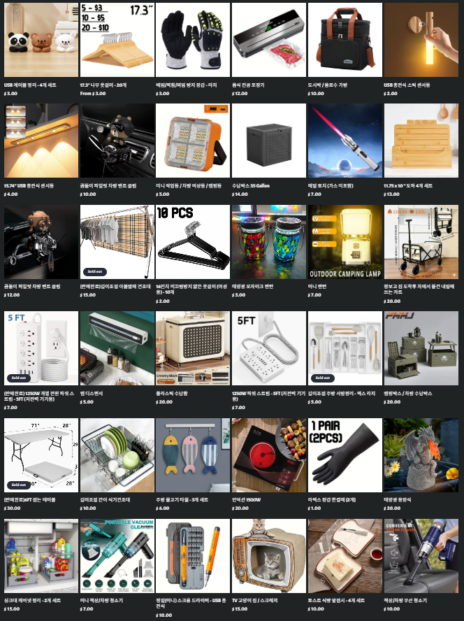 ❌ 하루 혹은 이틀에 물건 최소 하나이상 올립니다. ( 주로 저녁 9시이후 )
