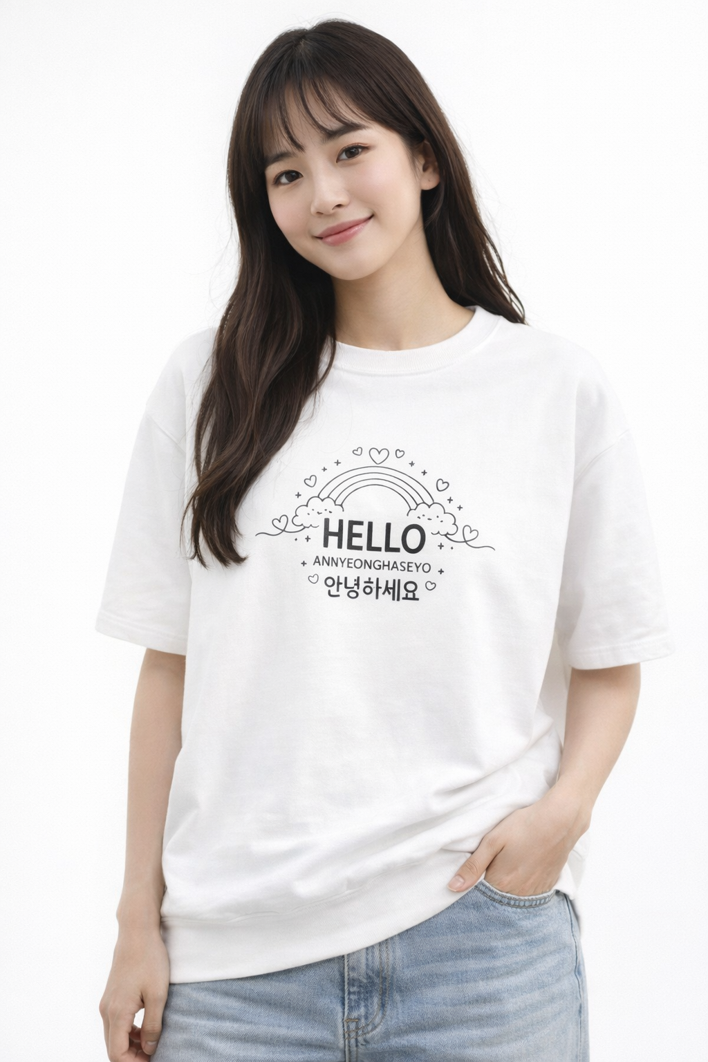 한국어 문구가 새겨진 의류와 패션 아이템을 보러 오세요.