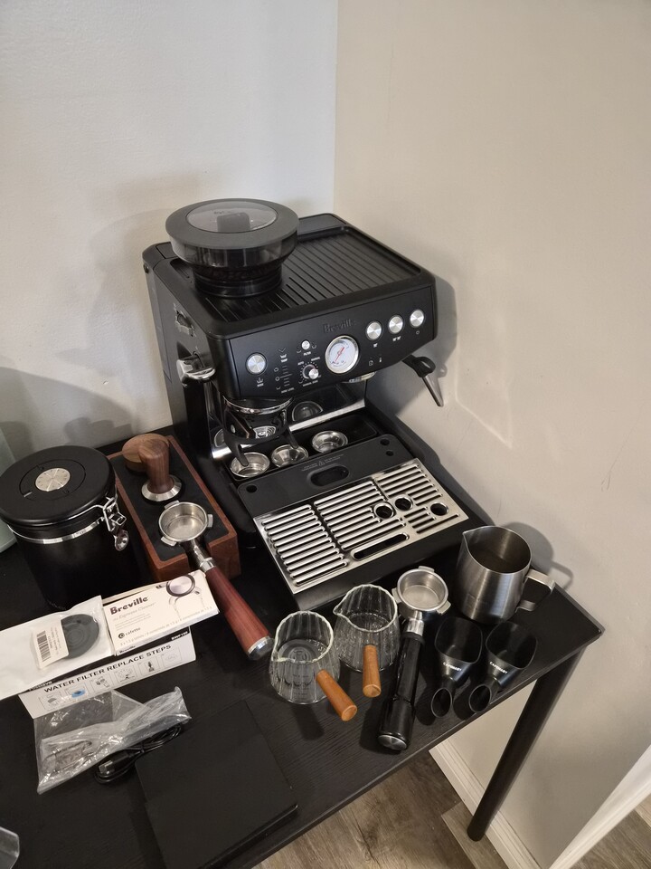 잘써오던 커피머신을 이사때문에 급하게 내놓게 되었습니다. 상태는 보시는것과 같이 너무 좋구요. 커피머신과 관련된 저울, 여분의 포터필터, 청소도구, 커피빈 보관함등등 사진에 보이시는거 일괄드립니다. 일하는시간에는 전화를 못받으니 문자먼저 부탁드리겠습니다.