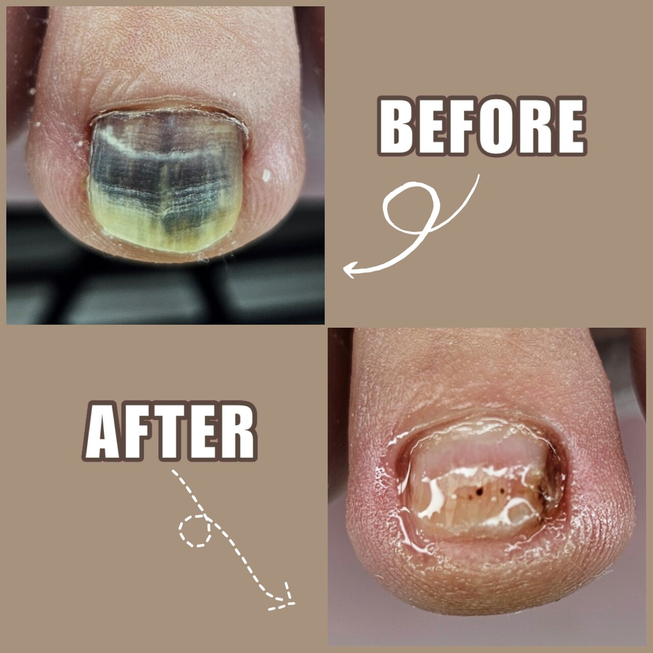 1)발톱이 두꺼워지고 변색되어 신발신을 때마다 불편하셨나요?