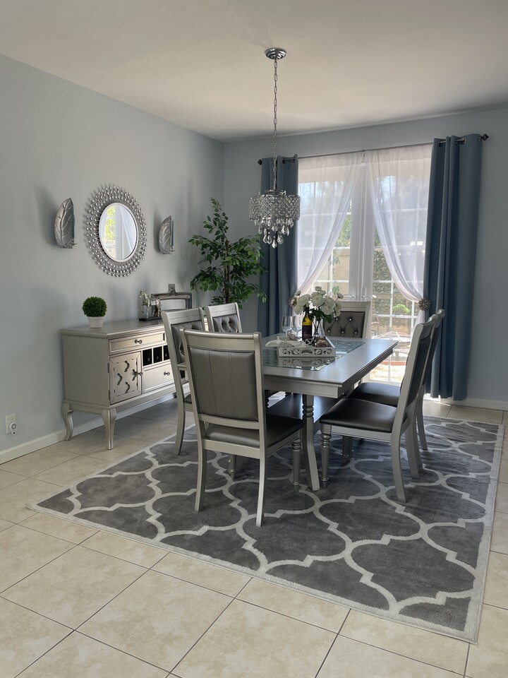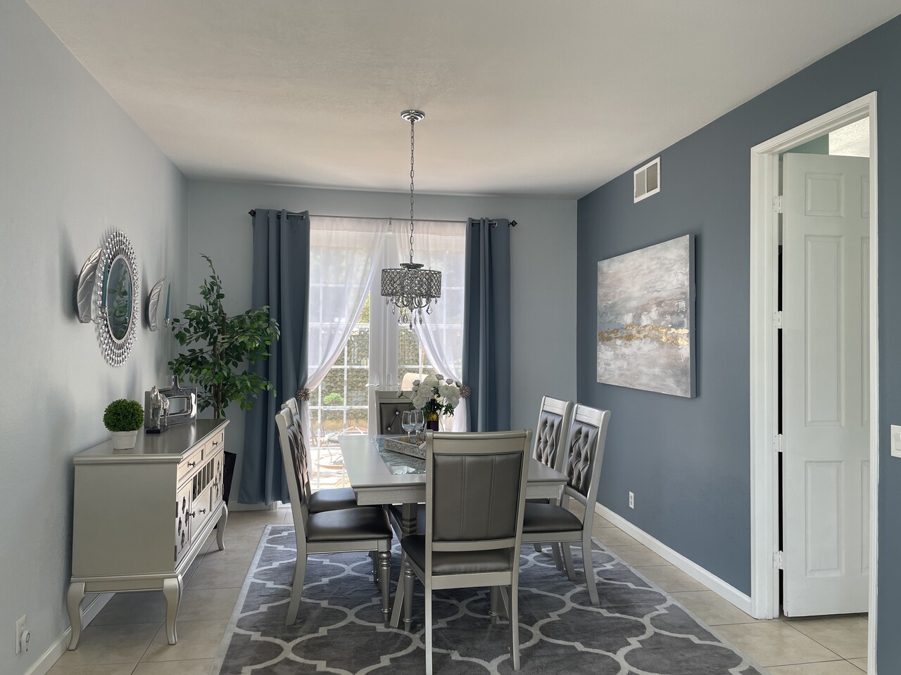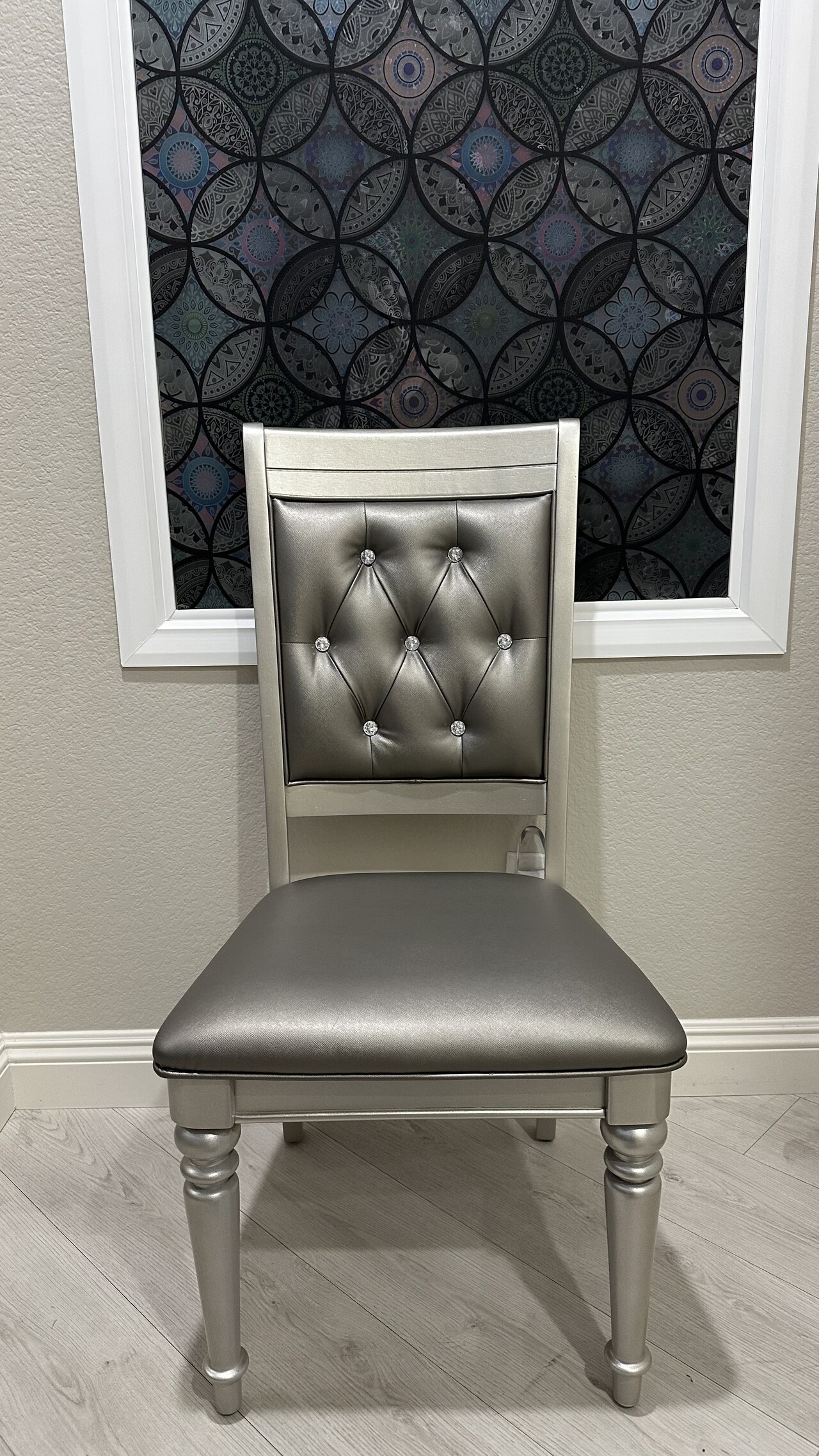 고급스러운 실버 글램 스타일 6인용 다이닝 세트입니다.