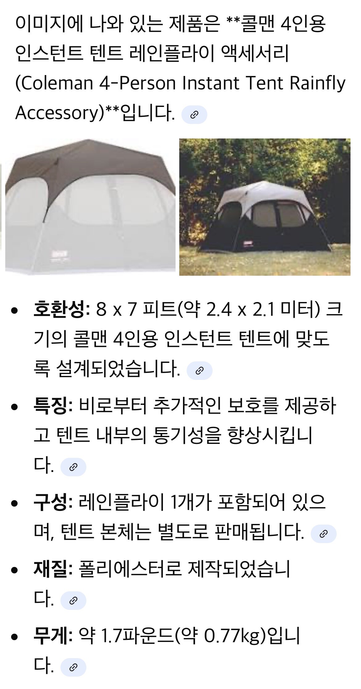 콜맨 4인용 텐트 레인플라이