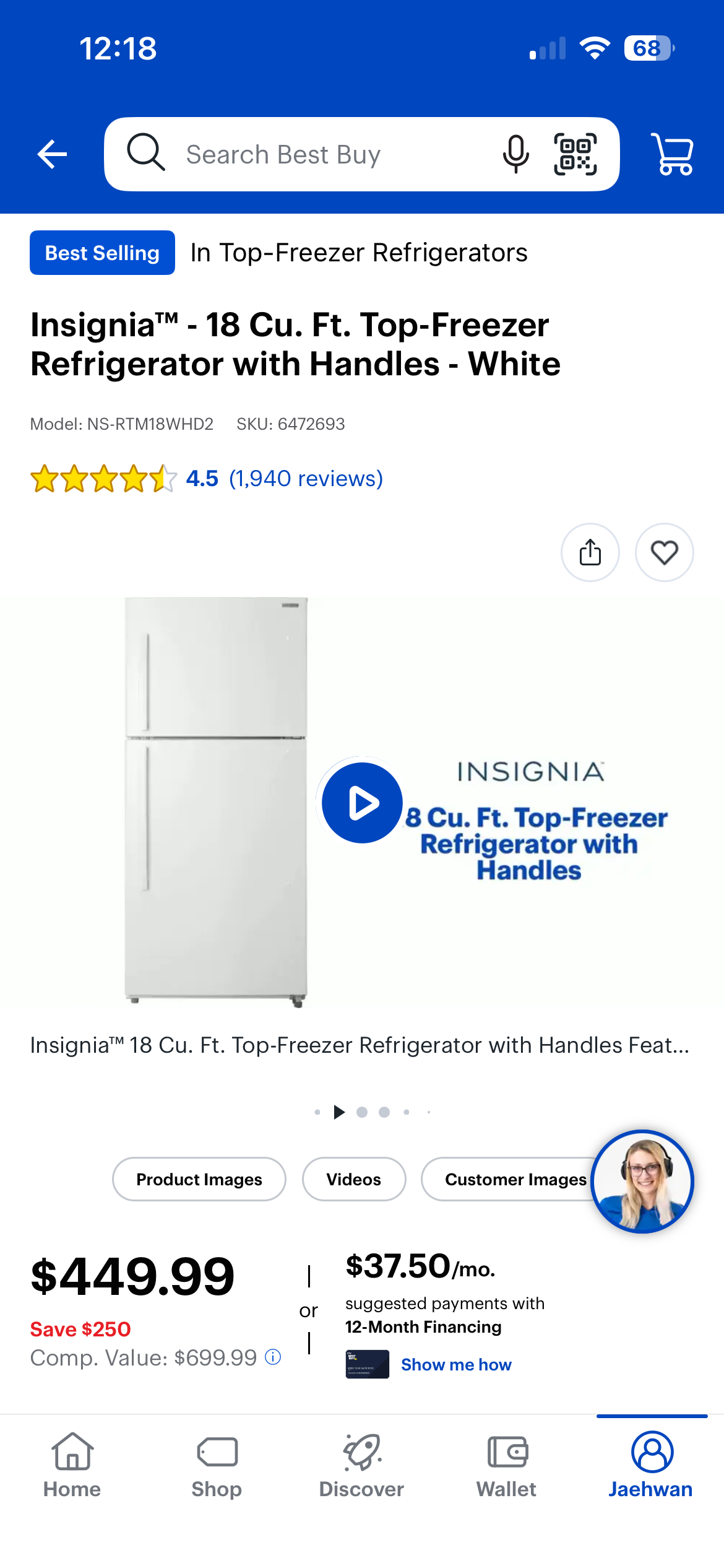1년 조금 넘게 사용한 냉장고 200불에 판매합니다.