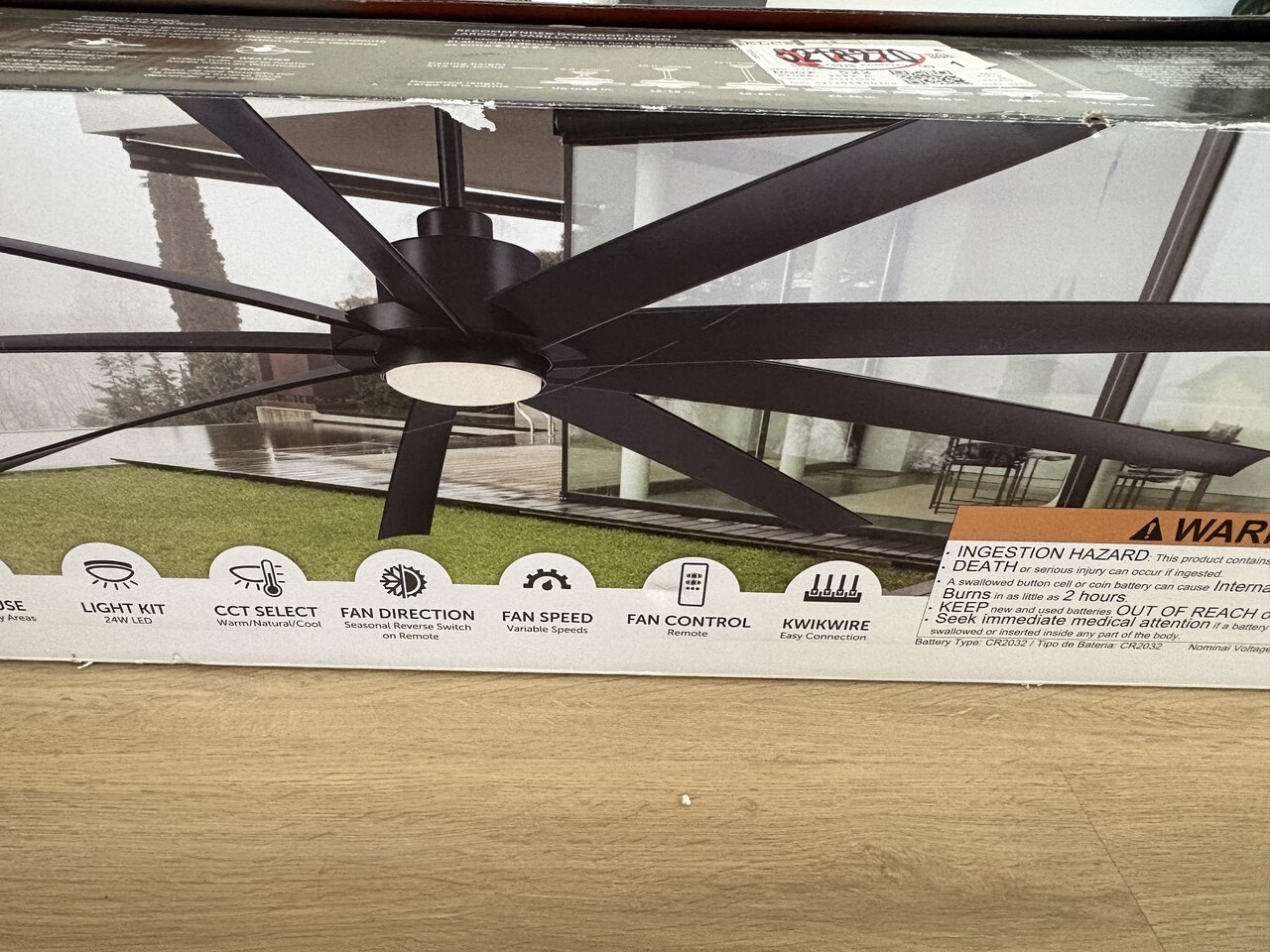 EightyFour 84-in Black with Matte Black Blades Adjustable White LED Covered Outdoor Ceiling Fan