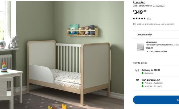 https://www.ikea.com/us/en/p/aelskvaerd-crib-birch-white-00466701/ 아기 크립 판매합니다.