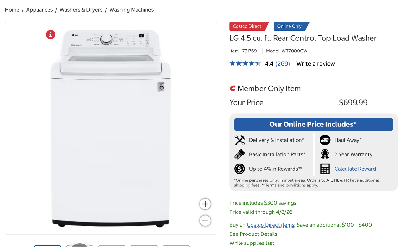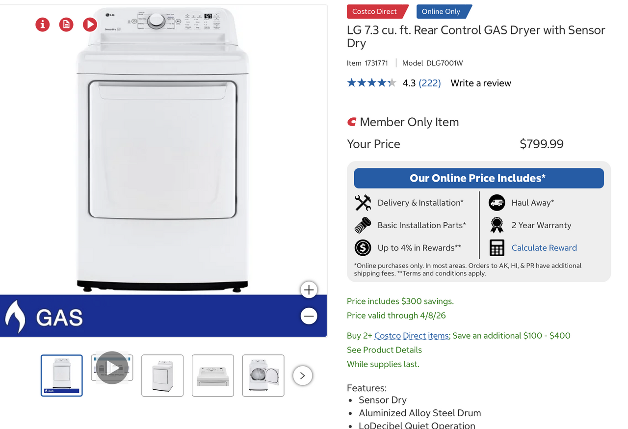지금도 코스트코에서 세탁기 $699, 건조기 $799에 판매중입니다.