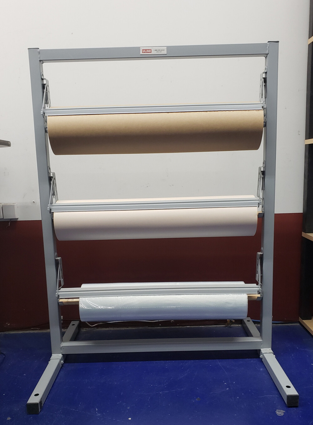 ULINE에서 구입한 쉽핑용 종이 절단기 입니다. 쉽핑용 박스의 빈 공간을 채워 주는데 사용하는 페이퍼 롤을 거치하고 편하게 절단하여 사용하는 거치대이자 절단기입니다. 주문을 받아 아이템을 쉽핑용 박스에 팩킹하여 UPS나 FDEX등을 통해 배송하는 사업체에서 사용하면 편리합니다. 사진에 있는 페이퍼 롤은 포함되지 않습니다.