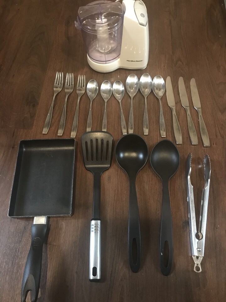 야채 찹퍼,수저,포크,나이프,계란팬(사용감 있음)등