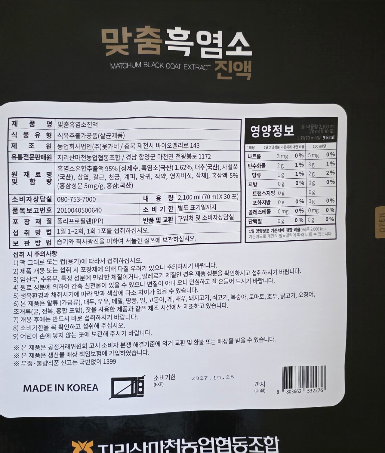 지리산마천 농협협동조합 맞춤 흑염소 진액 30/box X 2