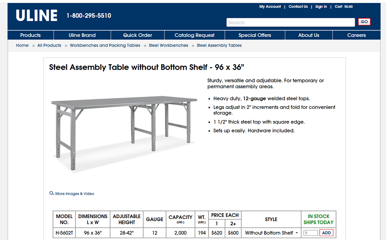 Uline에서 동일 제품 판매가는 $600 이상 (Model#: H5602T)