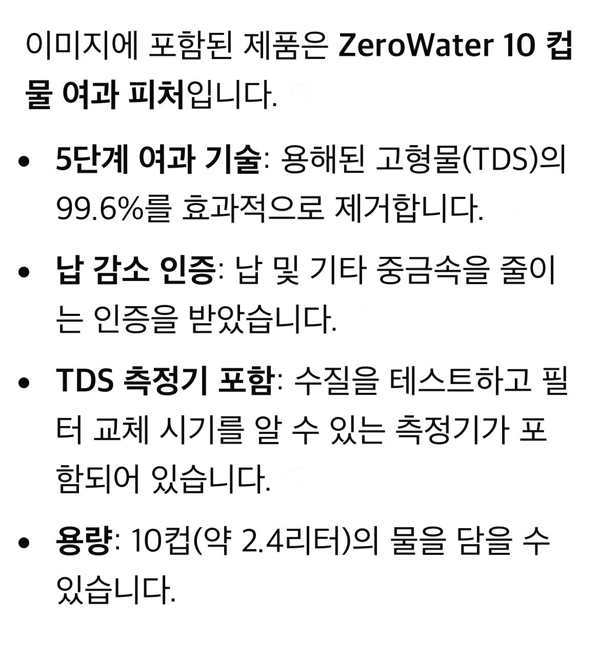 제로워터 10컵 정수기