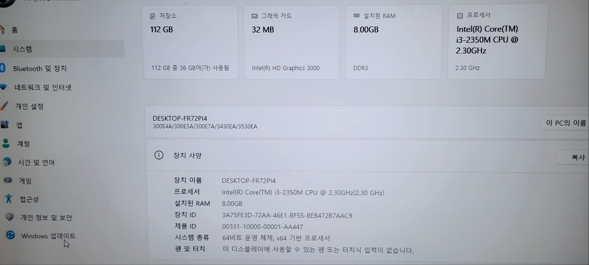 삼성 노트북 15.6 인치 윈도우 11 SSD 하드로 교체해서