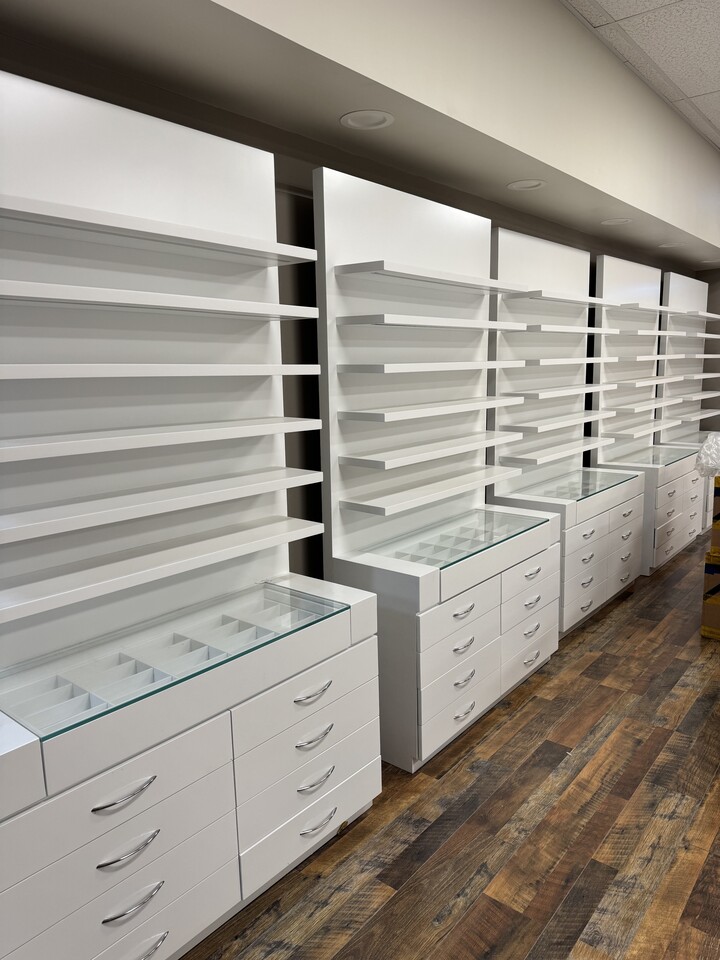 벽 디스플레이 케이스 와 유리 진열 케이스.
