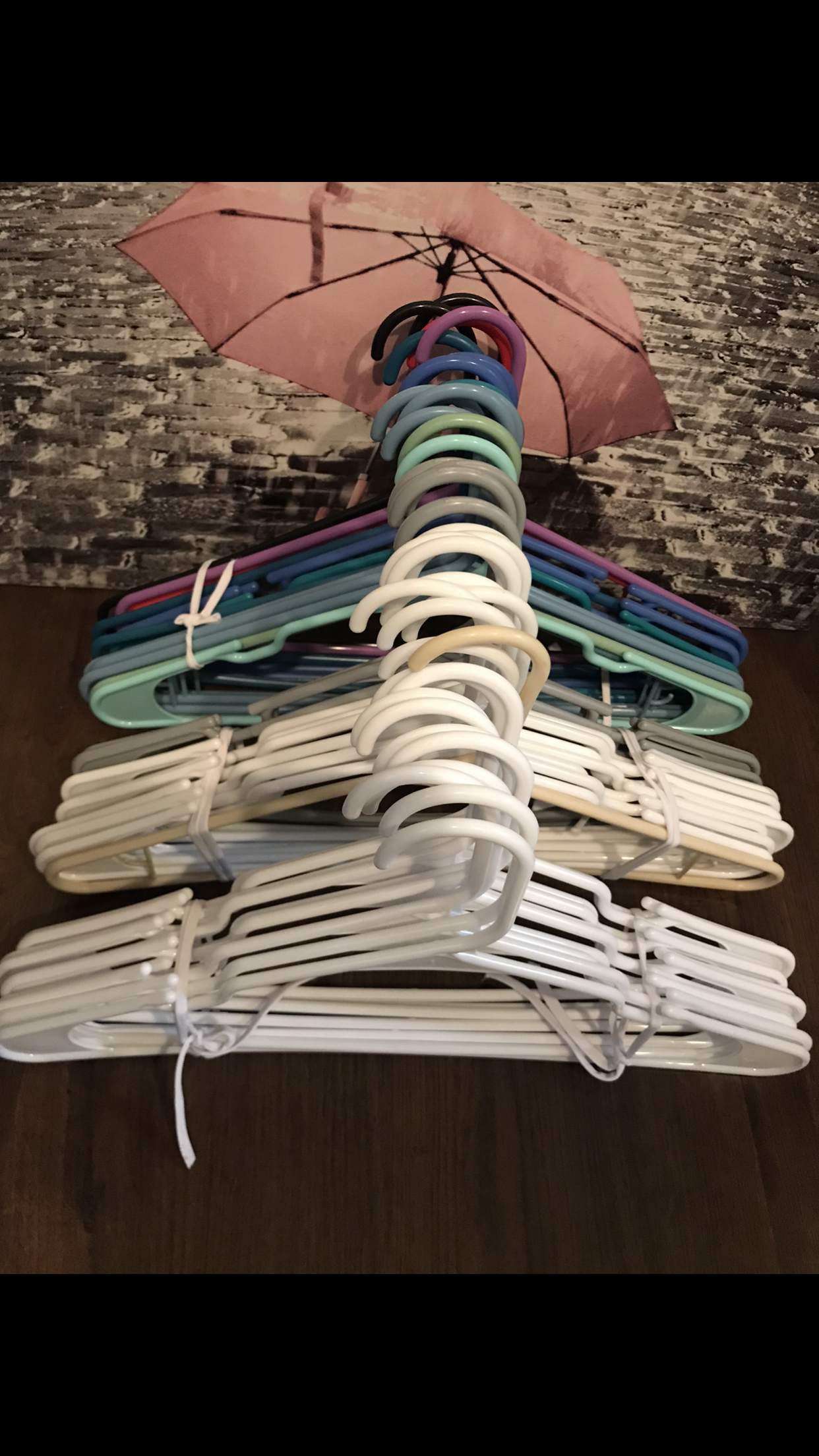 색색의 옷걸이 30개와 문걸이용 옷걸이도