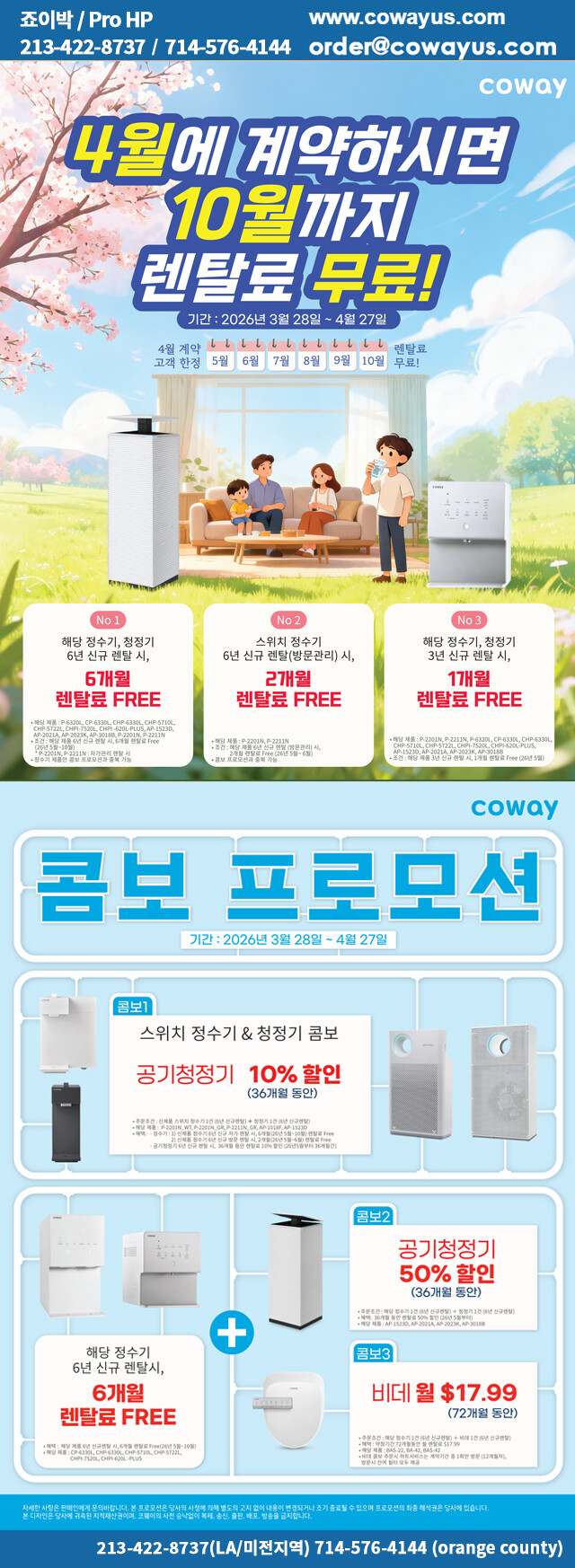 2. 해당 정수기 + 공기청정기 6년 렌탈 계약시--> 정수기 6개월 면제 + 공기청정기 36개월 50%할인