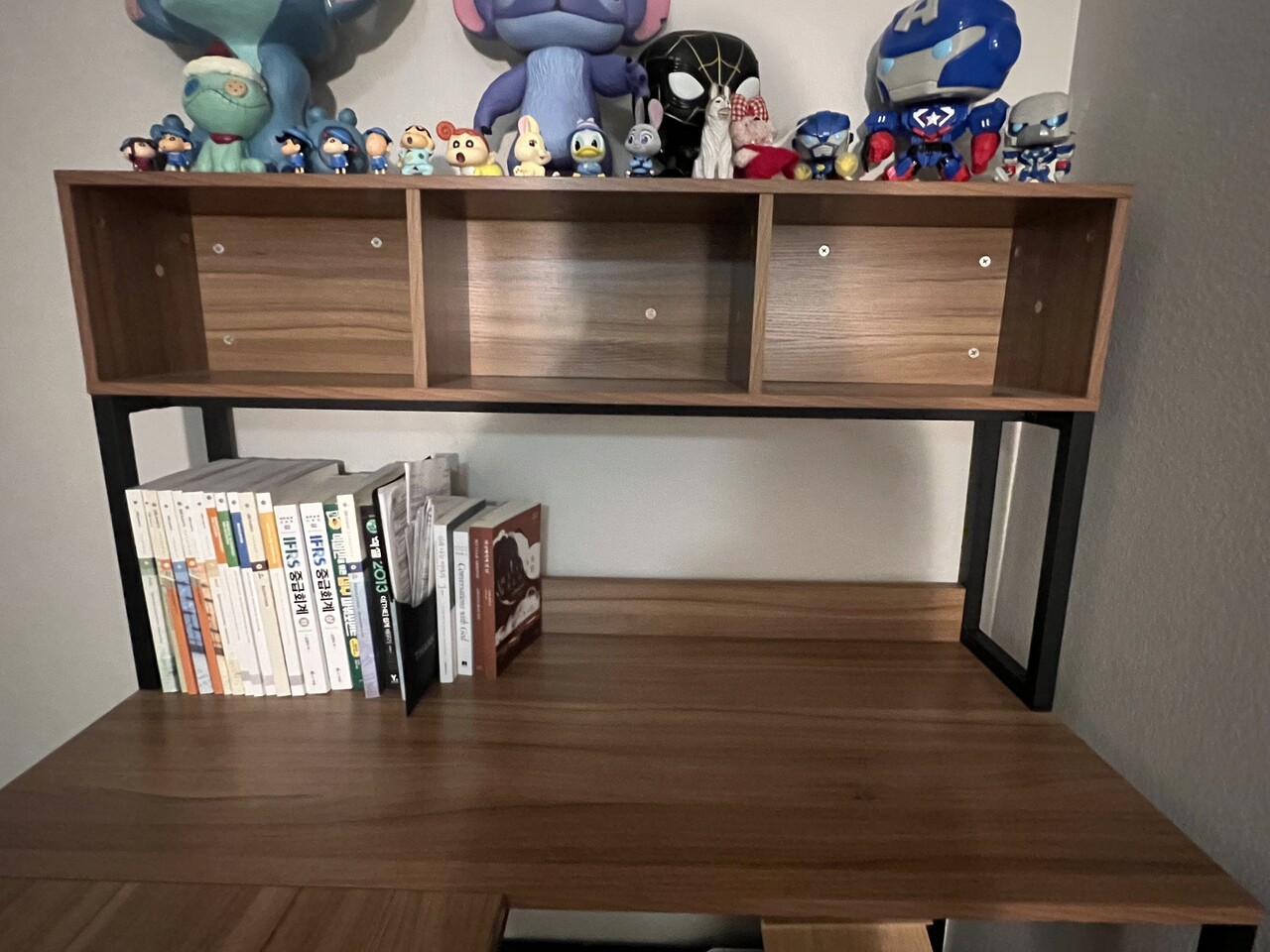 사진에서 보시다시피 꽤 큰 L짜 모양에 수납공간도 많고 무엇보다 나무들이 무거운 재질이라 흔들리지않고