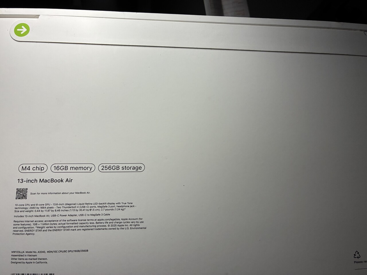 Mint Condition with Box / Macbook Air 13 inch M4 / 16GB /256GB SSD