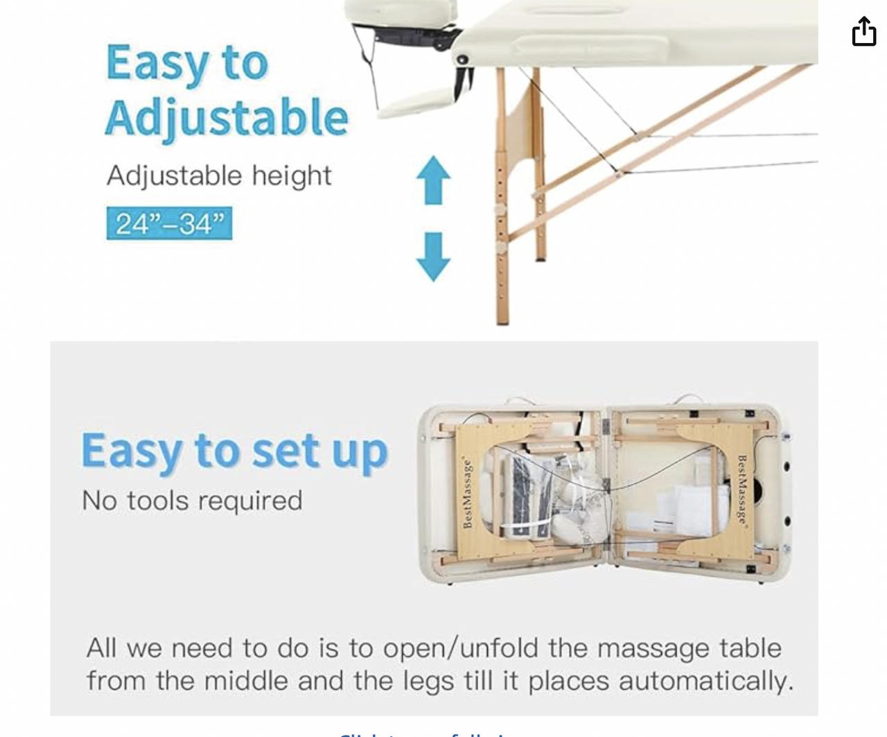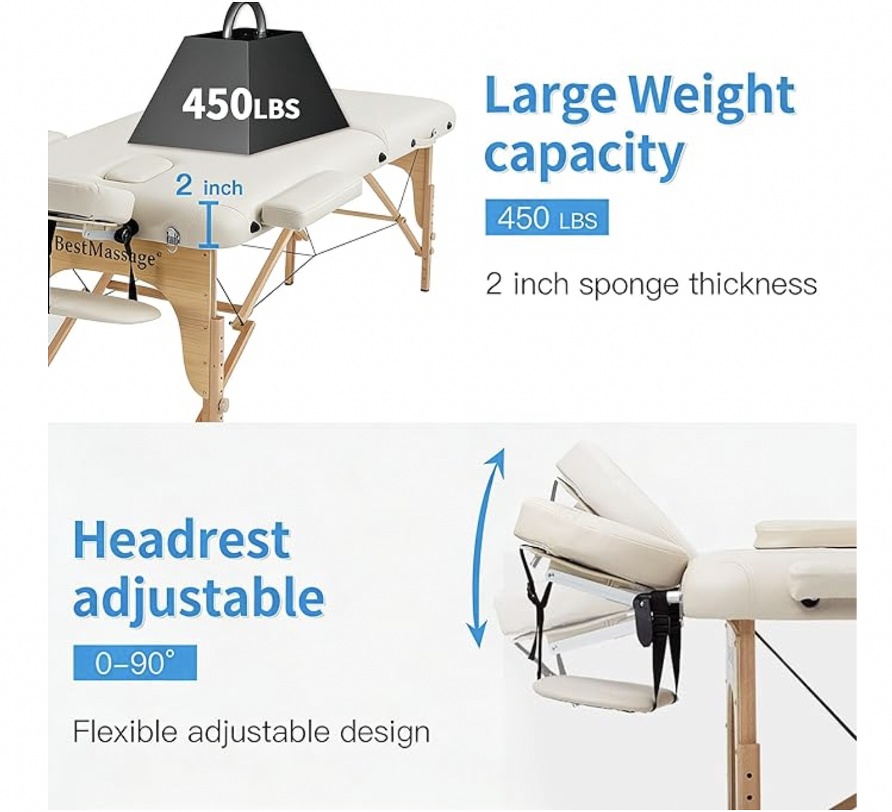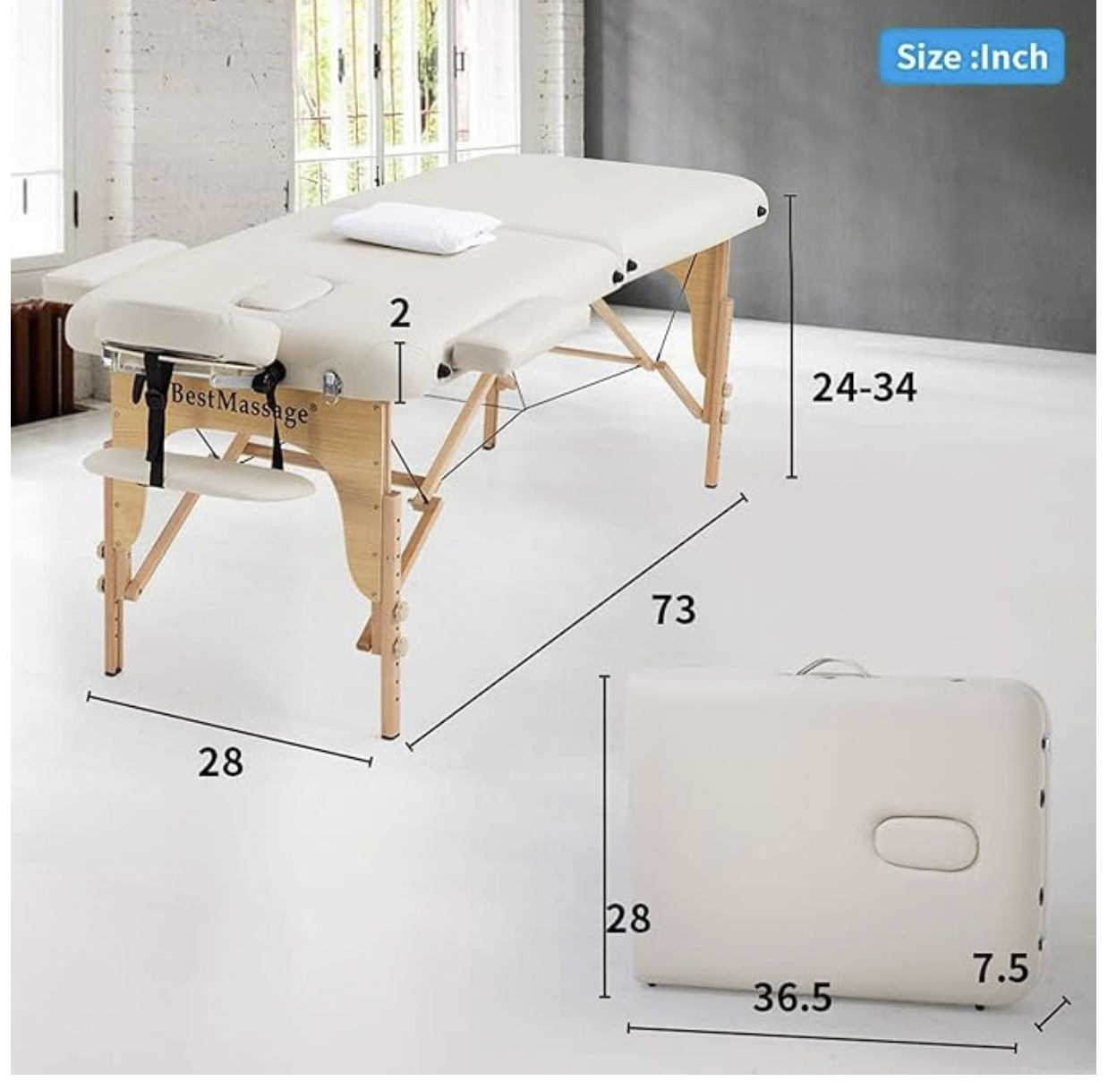 Best Massage Massage Bed Portable Massage Table 28 inch Wide Lash Bed Height Adjustable PU Leather 2 Folding with Towel Hanger Oil Pouch Half Bolster Round Bolster Non-Woven Bag