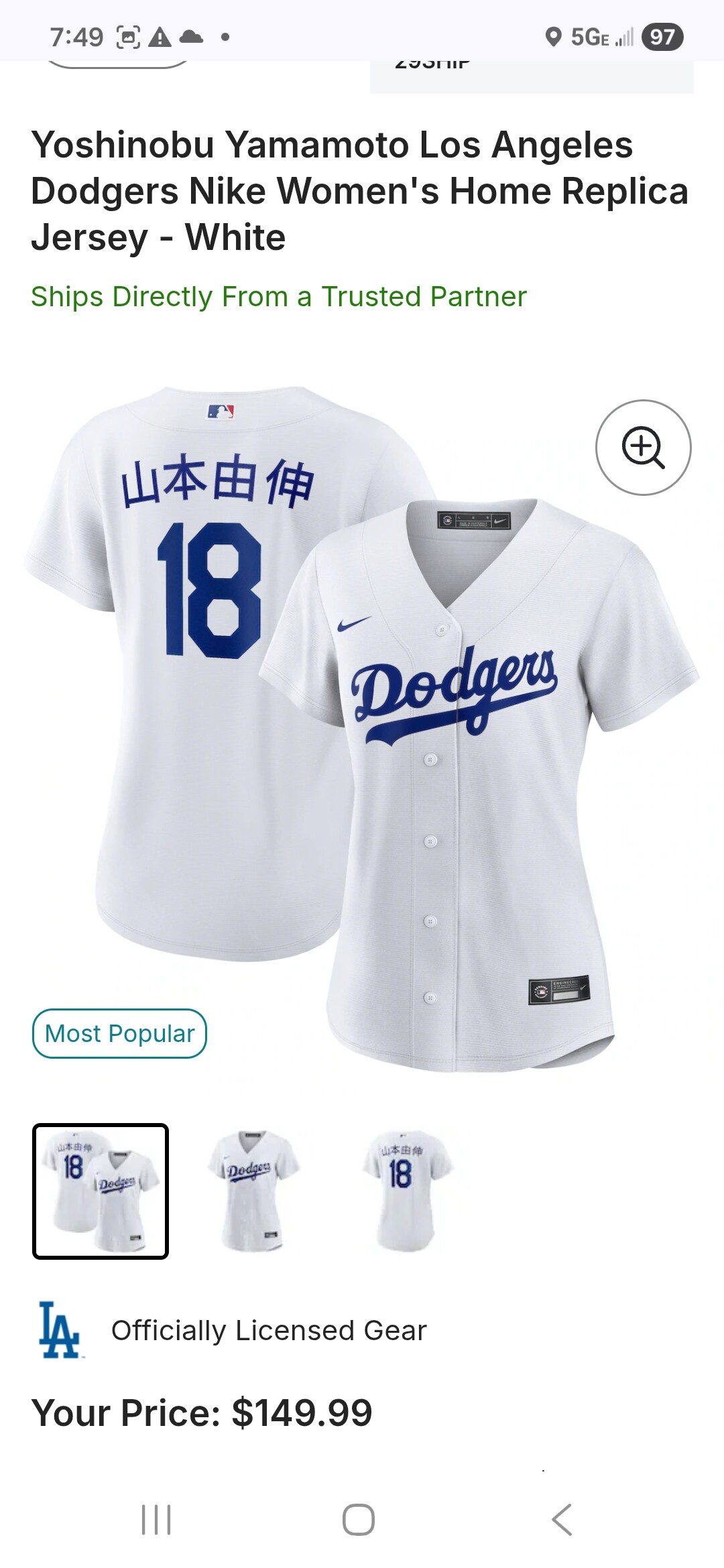5. Ohtani white Jersey 여성용 XL $80