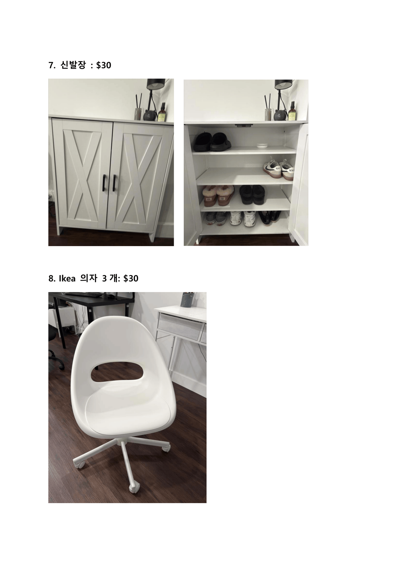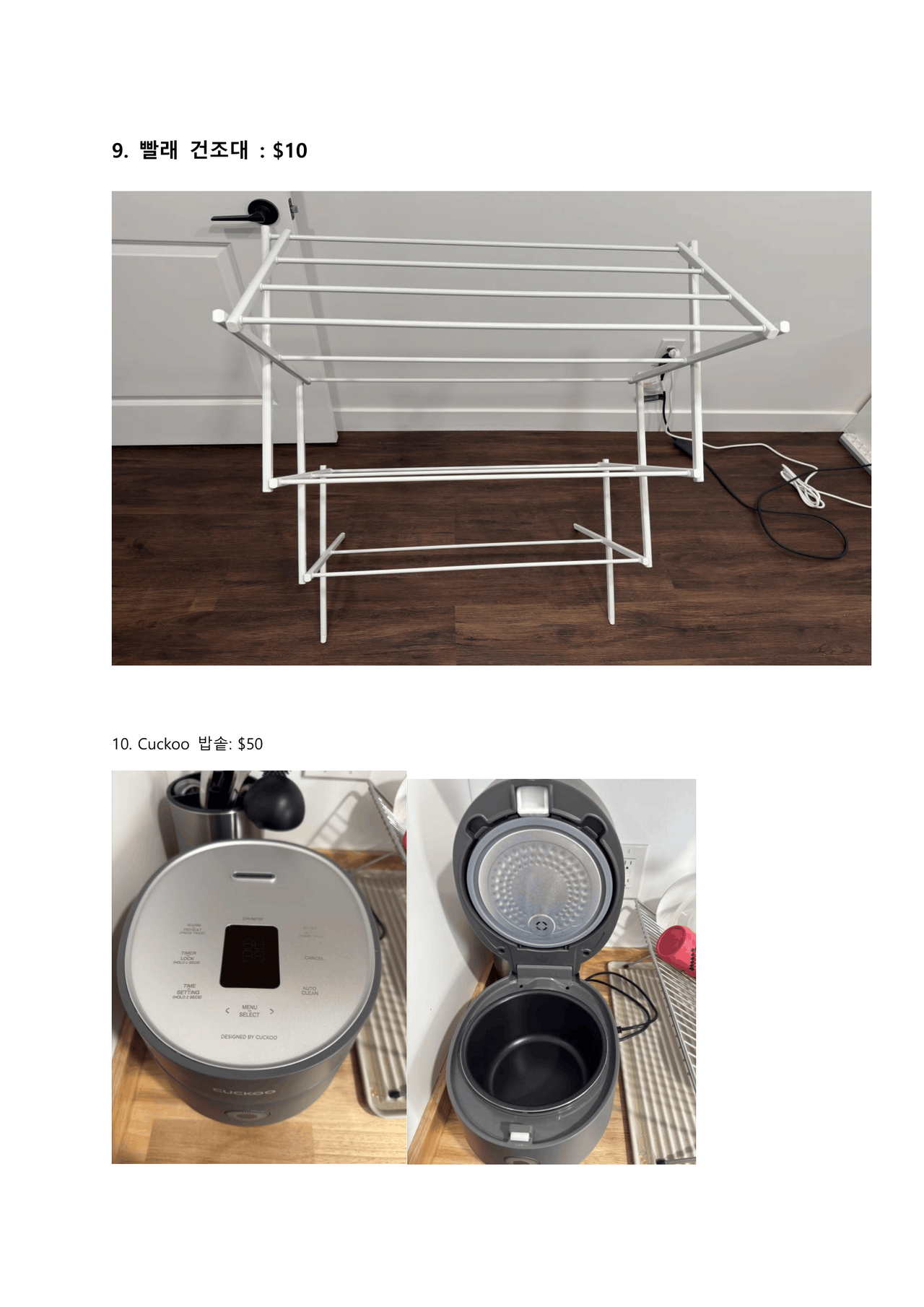 4월 말에 한국으로 귀국을 하게 되어 가구와 가전제품들 정리합니다.