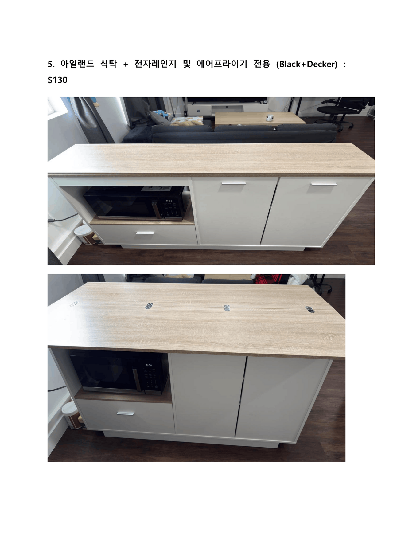 - 아일랜드 식탁 + 전자레인지 및 에어프라이기 전용 (Black + Decker) : $130
