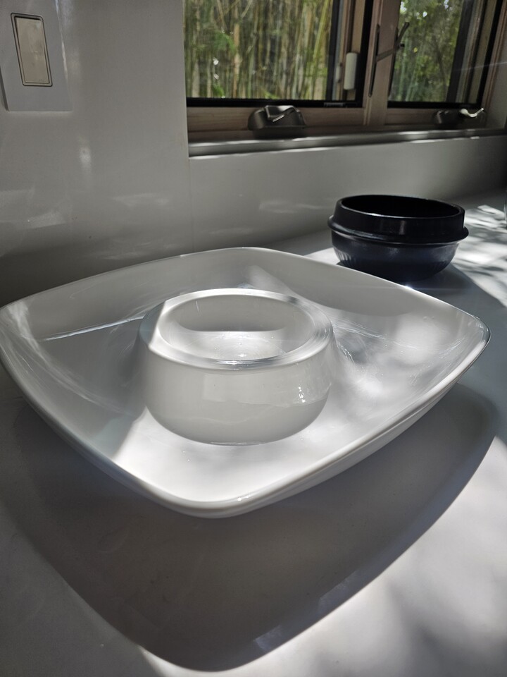 흰 큰 플레이트는 살사나 밀전병 가운데 두고 야채등 같이 파티용 내놓는데 사용