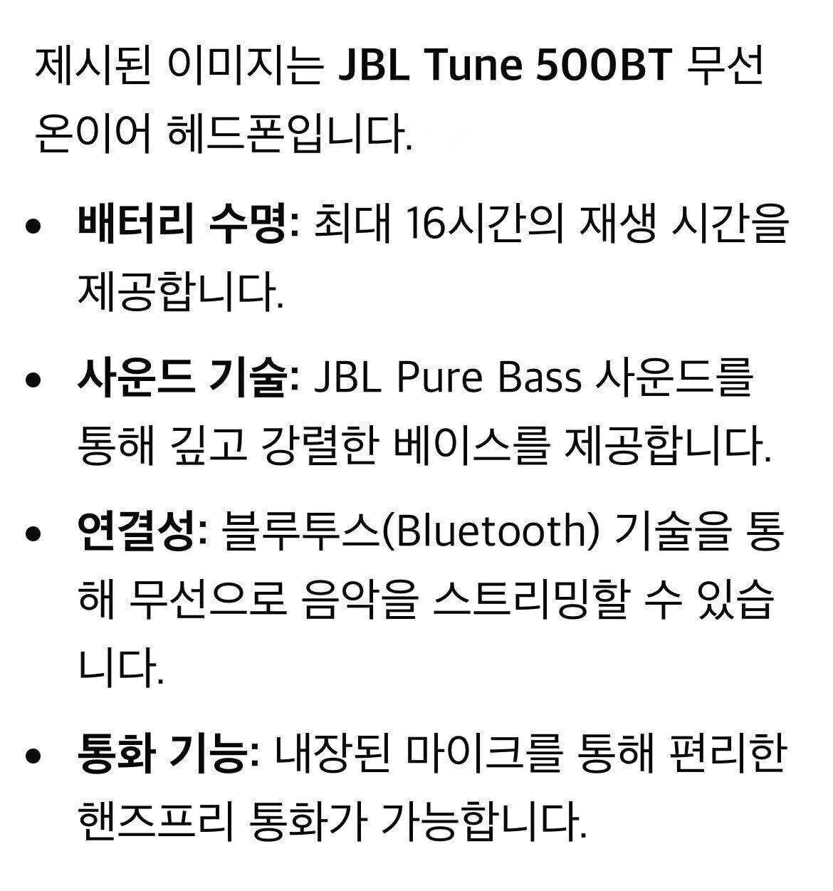JBL Tune 500BT 무선 온이어 헤드폰