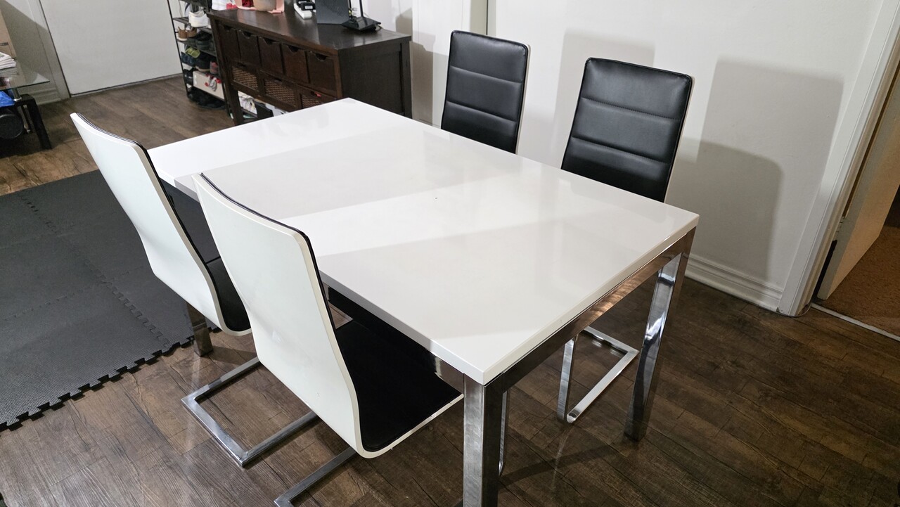 모던 다이닝 세트 5종 - 화이트 유광 & 크롬 소재 / 5 Piece Dining Set