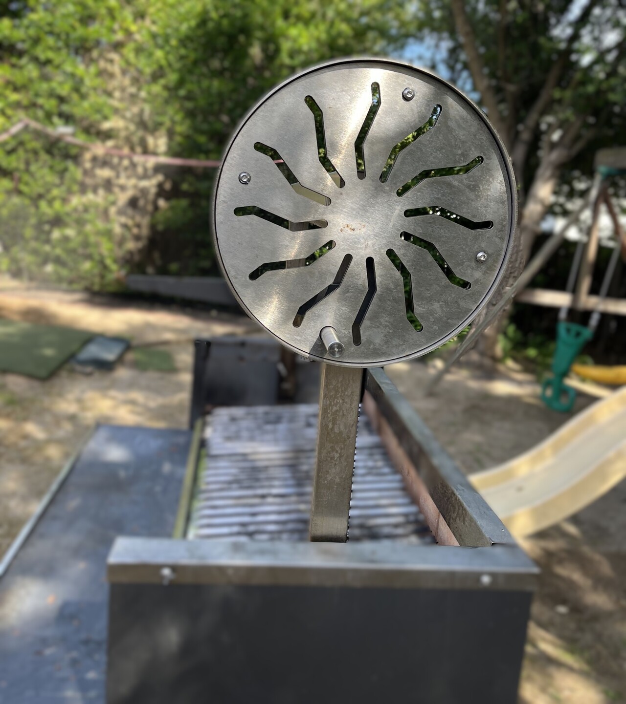 높이 조절 가능한 그릴 (크랭크 방식) → 온도 조절 편리