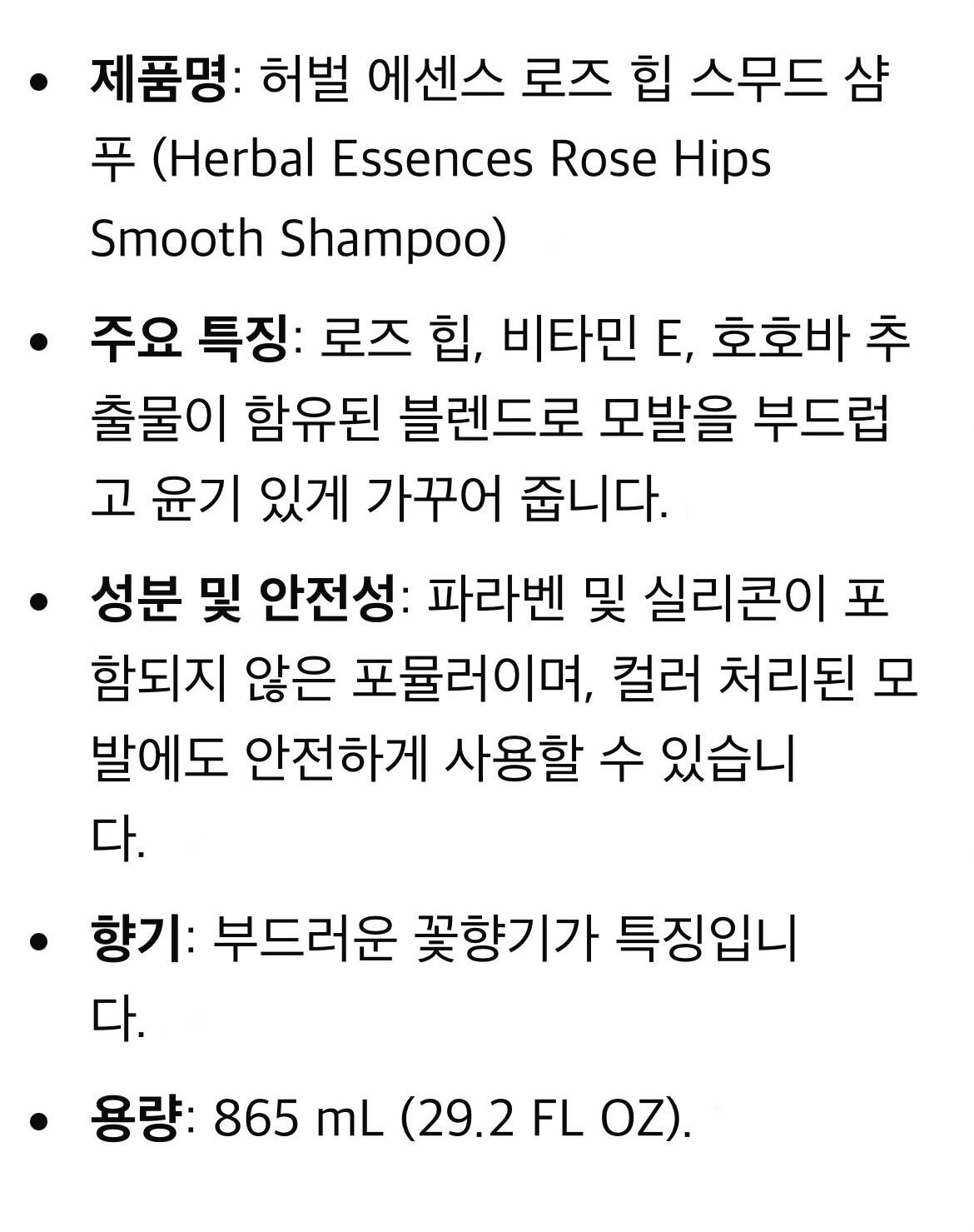 허벌 에센스 로즈 힙 스무드 샴푸 (용량 865ml)