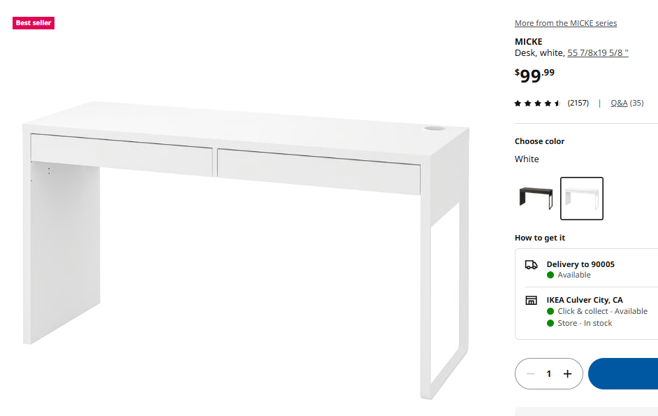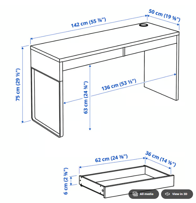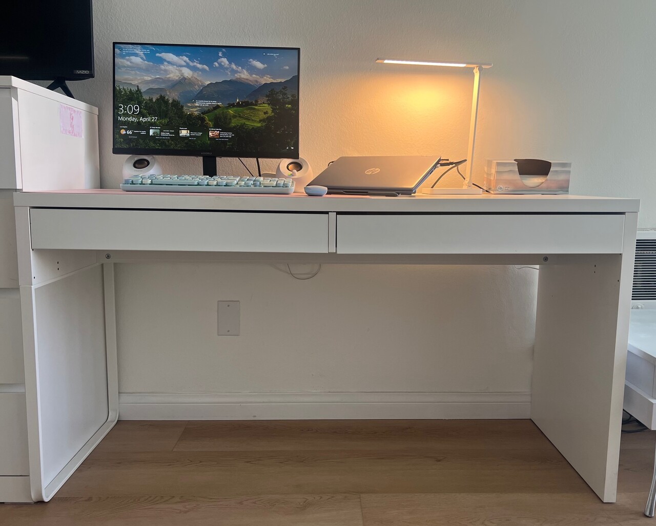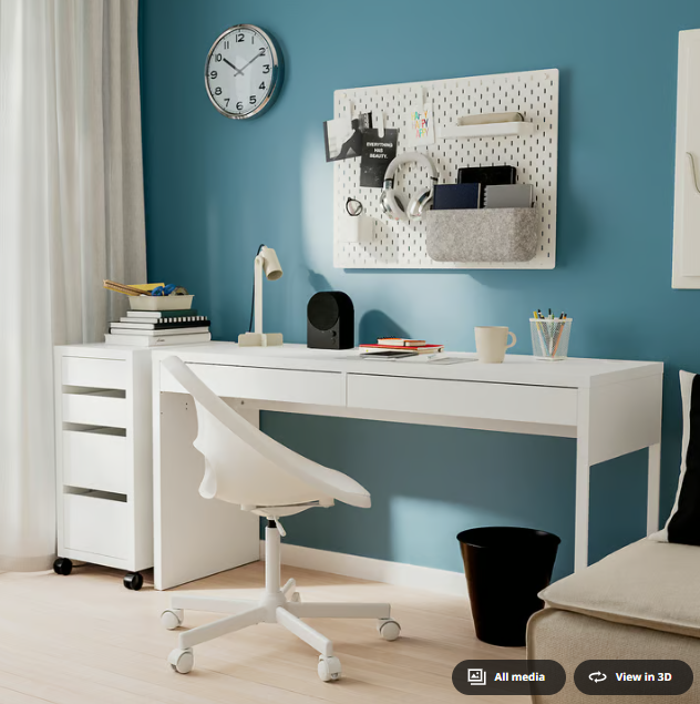 가로로 긴 화이트 데스크입니다. 아이키아 제품
