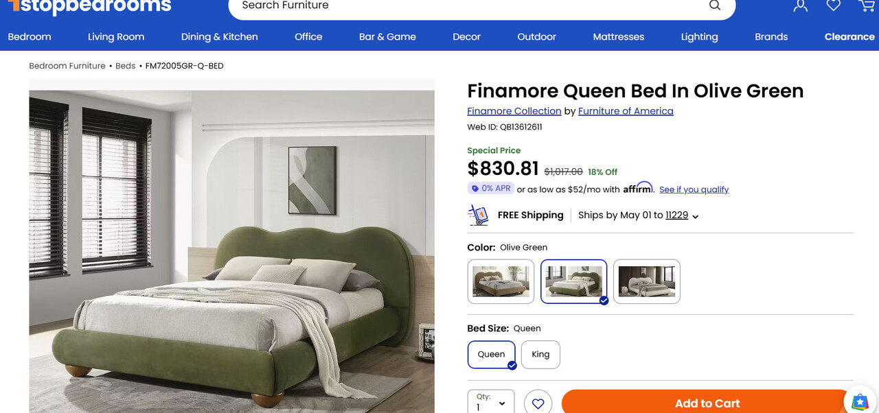 Queen Bed90.6"W X 76.8"D X 40.4"H
