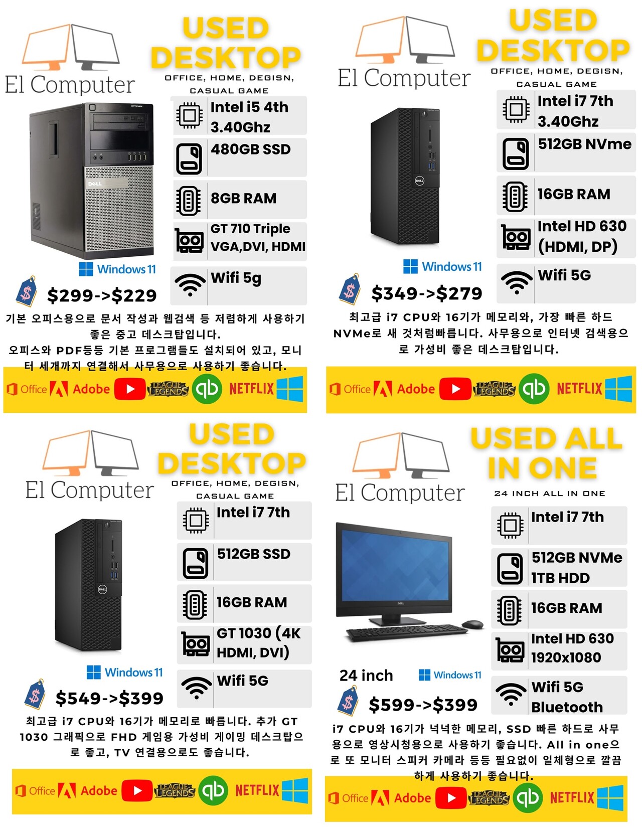 New 검퓨터는 물론, 중고 컴퓨터들(윈도우, 맥)도 좋은 컨디션에 프로그램 설치와 최적화되어서 최저가에 판매합니다. “비즈니스란에 컴엘258”로 검색하셔서 가격링크 비교해보세요.