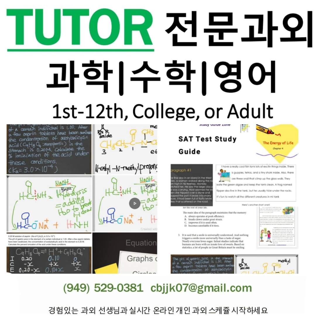 과외 TUTOR 영어,수학,과학 전문과외 성인,대학레벨,1st-12th