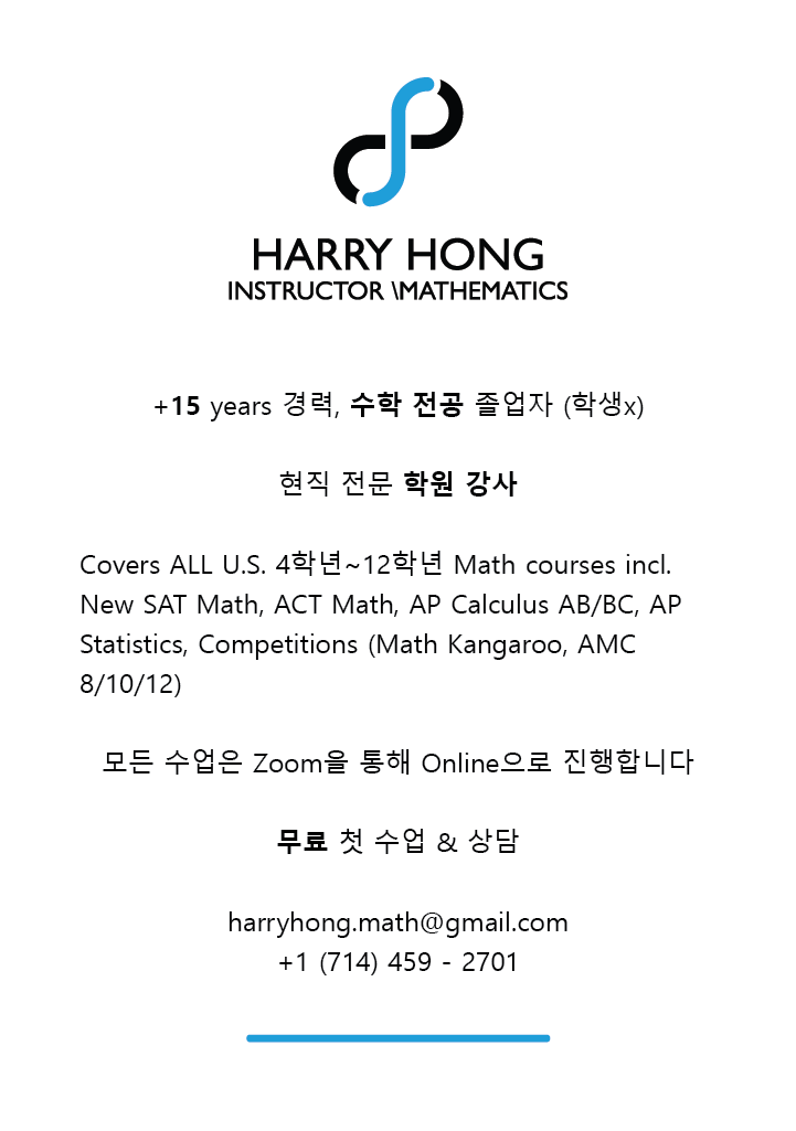 현 학원 강사로 일하는 10년 넘는 경력의 수학 전공자입니다. 상담, 첫 수업 무료이니 편하게 연락주세요
