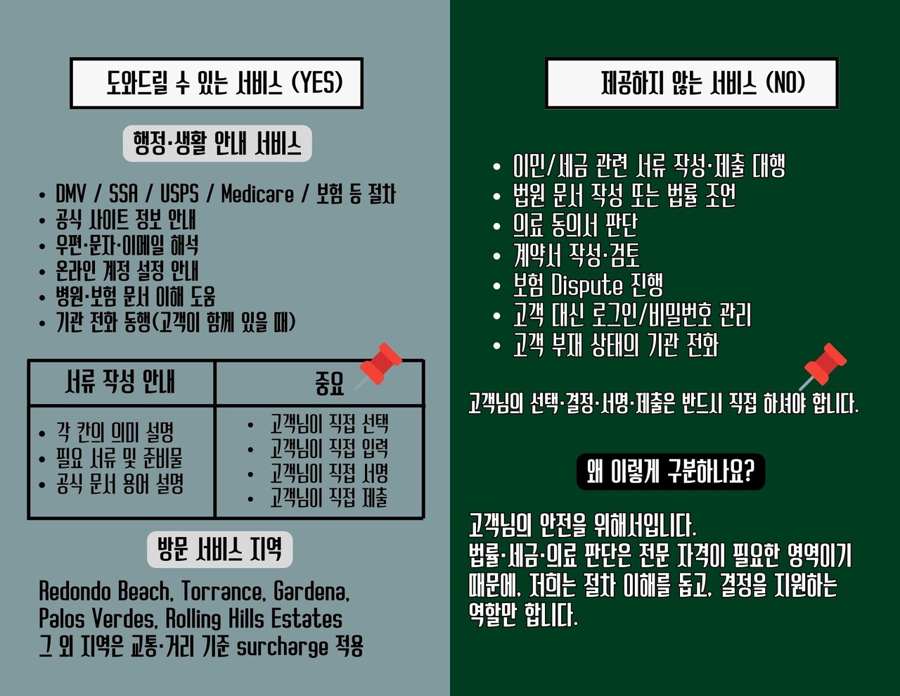 Southbay LA 지역 한인 생활 컨시어지 서비스입니다.