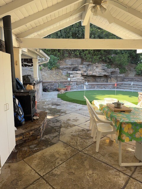 밖에서 들어오시게 되면, 뒤마당의 outdoor kitchenette 형식의 sink, cabinet, and table 과 작은 냉장고가 마련이 되어 잇습니다. 그리고, 단독으로 쓰실수 있는 세탁기도 준비되어 있구요.