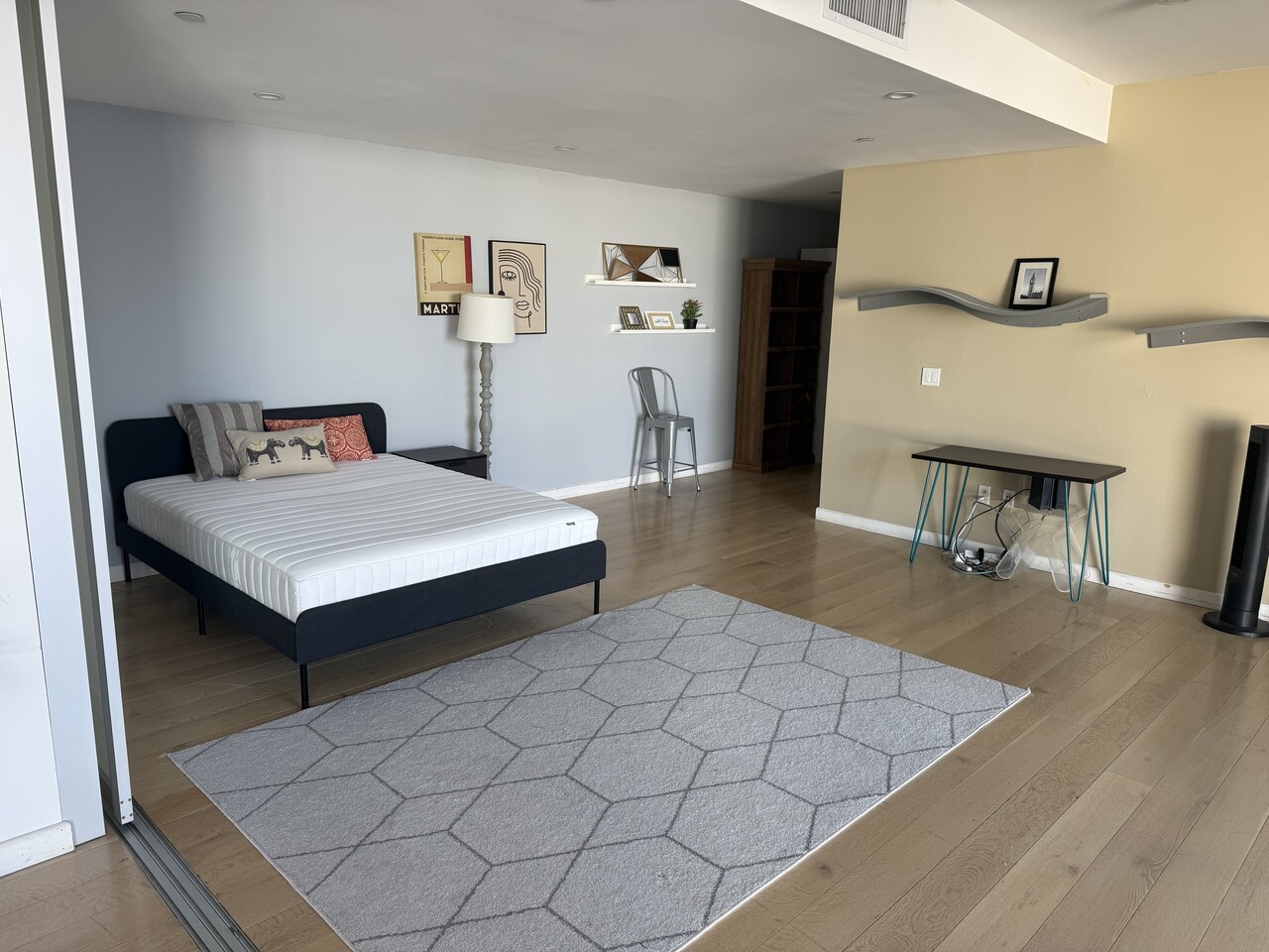 새 침대, 책장, 냉장고