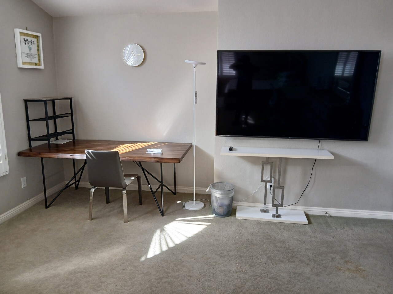 큰 방 ( 410 sf ) Furnished ,킹 사이즈 침대, 화장대,서랍장, 고급책상,소파, 대형 TV (80 인치}
